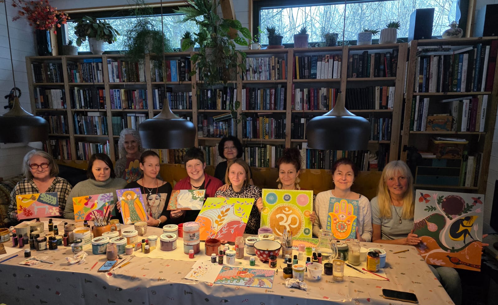 "Milá Evičko a Janinko. Celým srdcem děkuji za nádherný den ve Svatojánu, ve kterém jsem se mohla přenést do jiného světa. Nejednalo se pouze o "kurz malování". Bylo to spočinutí ve vlastní tvořivé síle doplněné vaší laskavou až maminkovskou péčí. Den plný milých setkání a dobrůtek, kdy jsem čekala pouze pohoštění a dostalo se mi tříchodového menu na úrovni špičkové veganské restaurace!. Tvořila jsem si obrázek jako vlastní projekci - což byl proces doslova léčivý! Závěrem bych chtěla "kurz" doporučit nejenom jako příležitost naučit se novou techniku malování, ale také jako čas ,kdy nemusím myslet ani starat se o nic ❤️ S úctou ze srdce děkuji a když to bude jenom trochu možné, nevynechám jedinou příležitost užít si tak naplňující čas-čas jenom sama pro sebe v nádherném prostředí s obdobně naladěnými lidmi."